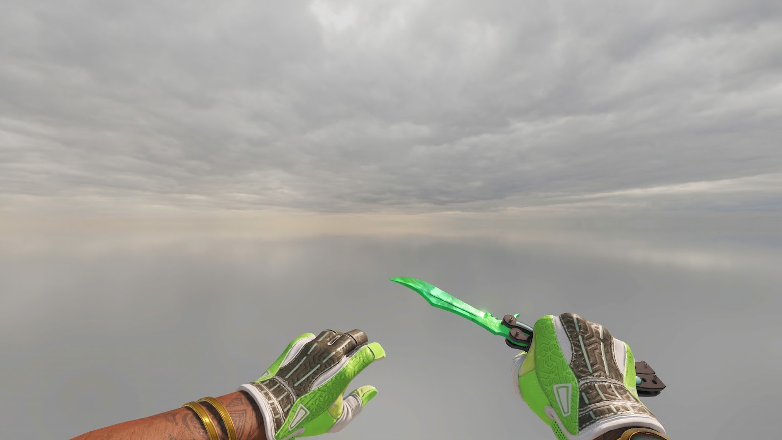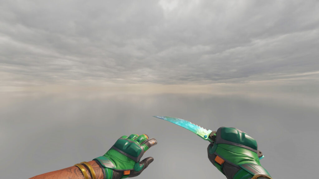 Начнём с самого дорогого и очевидного — перчатки и нож. Здесь при неограниченном бюджете у нас ★ Нож-бабочка | Гамма-волны паттерна Эмеральд и ★ Спортивные перчатки | Живая изгородь. Суммарная стоимость такого сета достигает 1 600 000 рублей.