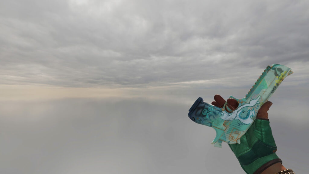 В роли Desert Eagle — Desert Eagle | Пищаль в зелёной палитре. Очень дорогой скин из коллекции Cobblestone, стоимостью более 20 000 рублей.
