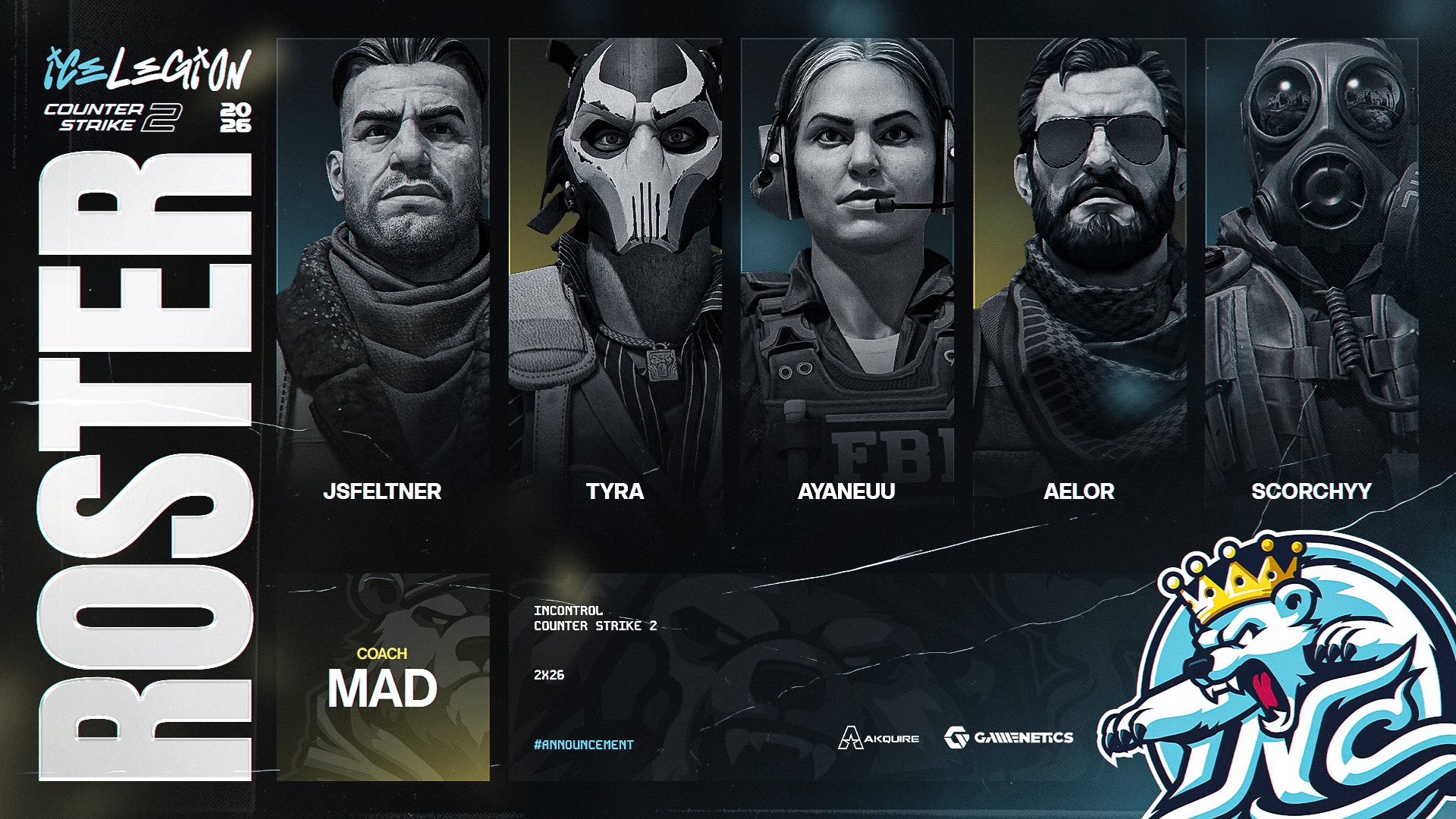 Американская киберспортивная организация InControl объявила о подписании Уильяма «aelor» Африкано и Энтони «ayaneuu» Шойера. Анонс был опубликован в официальном аккаунте клуба в X.