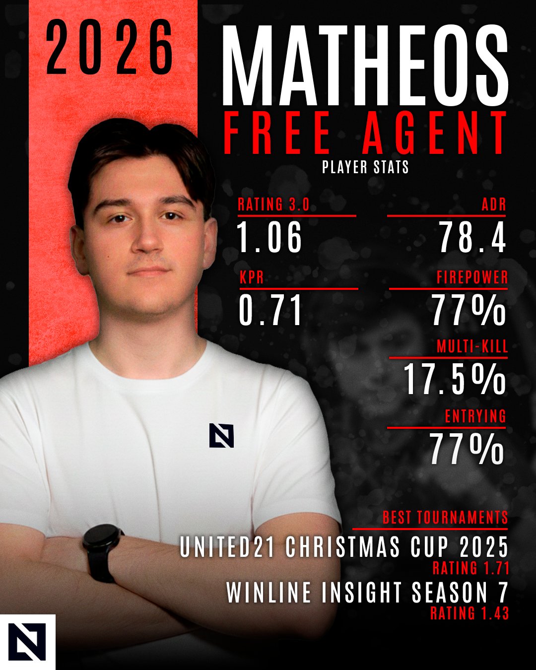 Киберспортсмен Матэо «Matheos» Прислин сообщил о поиске нового коллектива для себя на следующий соревновательный сезон. Информацией он поделился на личной странице в соцсети X.