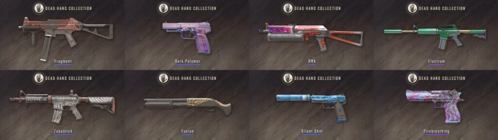 - Доступна коллекция Dead Hand: в неё входят 17 скинов из Мастерской, а также 22 совершенно новых перчаток в качестве редких особых предметов.