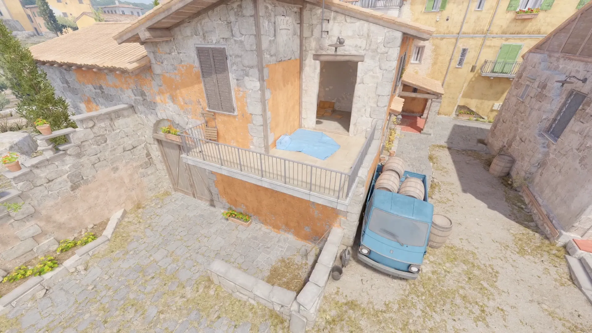 Главным изменением стало расширение балкона на пленте A. Теперь вместо узкого карниза игроки получают более широкую позицию — она стала ближе к тому, как балкон выглядел в Counter-Strike: Global Offensive. Кроме того, Valve закрыла позицию «тюрьма» на A-пленте. От неё остались только ступени.