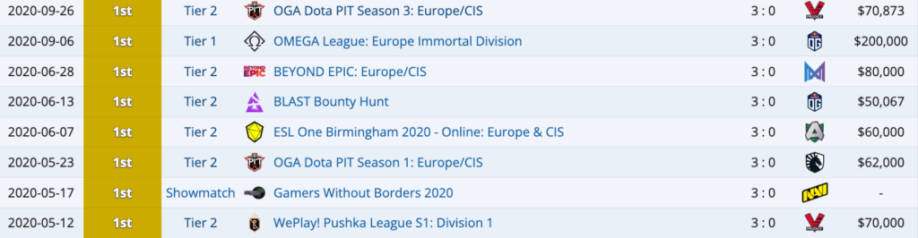 Последний успешный период для команды — 2019-2020-й. Secret выиграла два мейджора — в Чунцине и Париже, и заняла топ-4 на TI. А в ковидный год, казалось, не было коллектива сильнее — просто посмотрите на стрик из побед:
