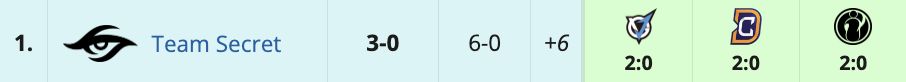 В плей-офф тогда вышли все, и SG e-sports в соперники попала Team Secret, которая завершила группы, не проиграв ни одной карты: