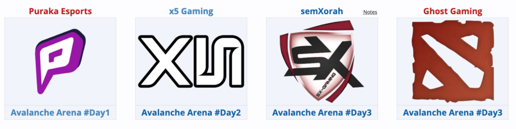 - Avalanche Arena — четыре команды из турнира, который организаторы проводили ранее.