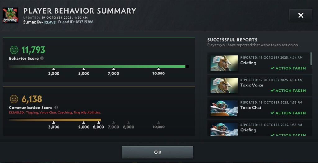 Оффлейнер Team Falcons Аммар «ATF» Аль-Ассаф на личной странице в X сообщил, что преодолел отметку в 6 000 порядочности и вновь открыл игровой чат.