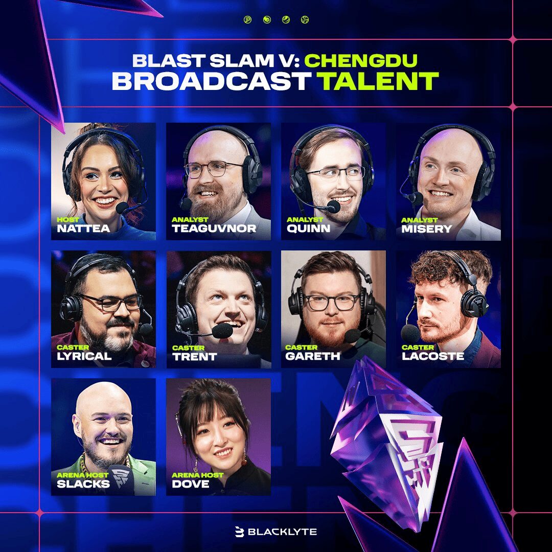 Организаторы BLAST Slam V на официальной странице в X опубликовали список талантов, которые примут участие в освещении турнира на английском языке.
