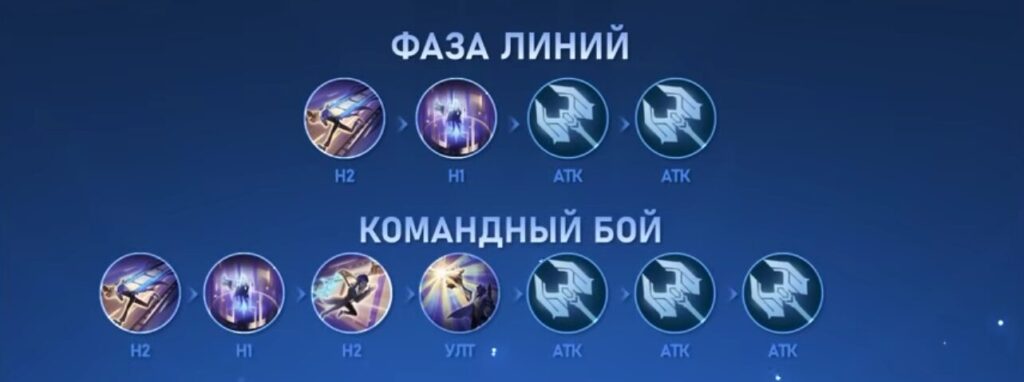 - Комбо на линии: навык 2 → навык 1 → атака → атака;