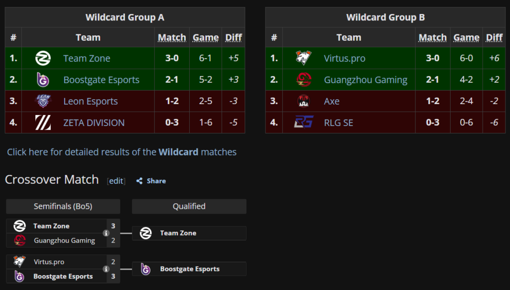 Со счётом 3:0 в плей-офф попали местные любимчики Alter Ego и малазийская Selangor Red Giants. К удивлению многих, турецкий ростер Aurora Gaming также не испытал особых проблем, а вот топ-2 Малайзии CG Esports пробиться в плей-офф вовсе не смогла.